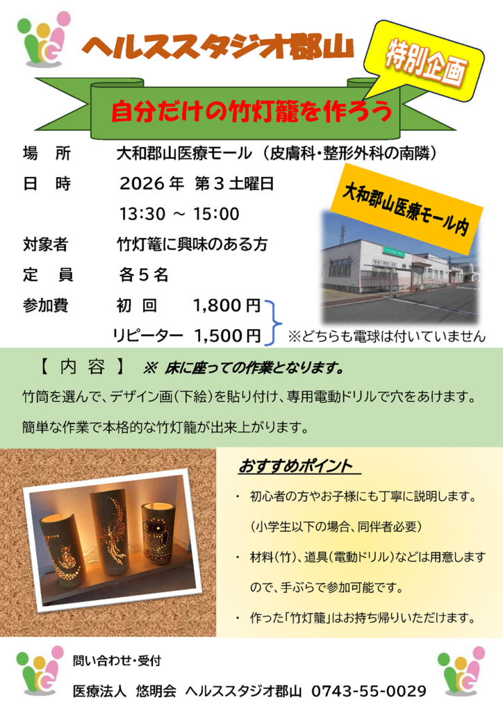 【2026年3月】《特別企画》自分だけの竹灯籠を作ろう(ヘルススタジオ郡山)